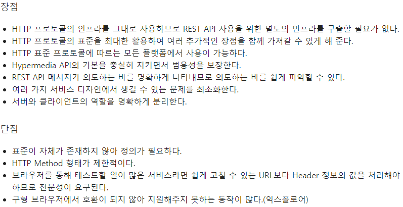 # REST 장/ 단점